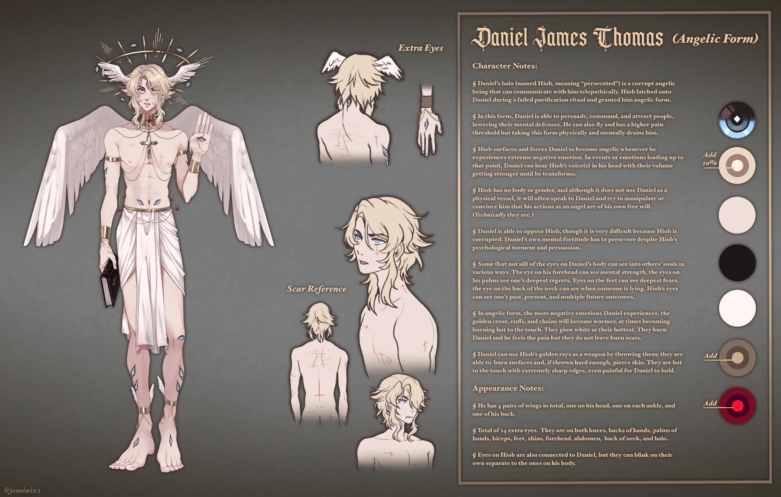 ◽️ Character's name and/or info; ref sheet will be customized to fit your design's aesthetic!Notes: